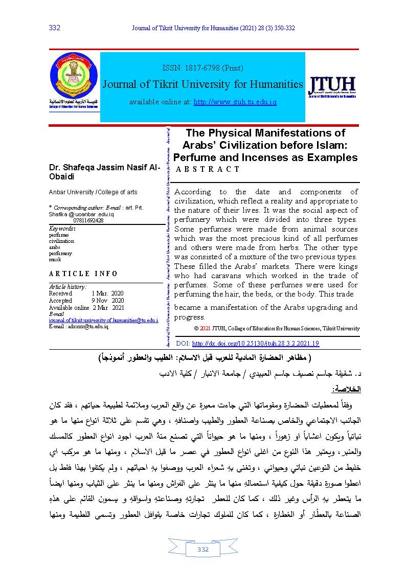The Physical Manifestations of Arabs’ Civilization before Islam: Perfume and Incenses as Examples