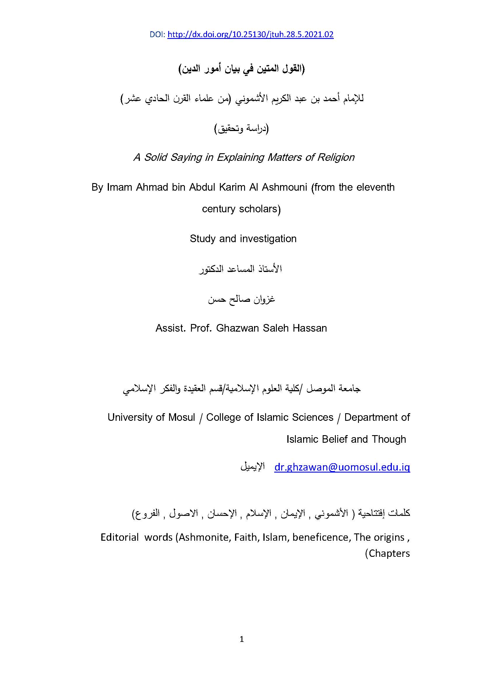 A Solid Saying in Explaining Matters of Religion By Imam Ahmad bin Abdul Karim Al Ashmouni (from the eleventh century scholars) Study and investigation